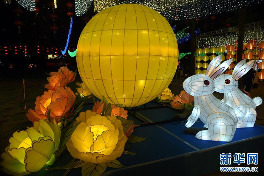 9月11日在香港维多利亚公园中秋彩灯会上拍摄的彩灯。 新华社记者 卢炳辉 摄