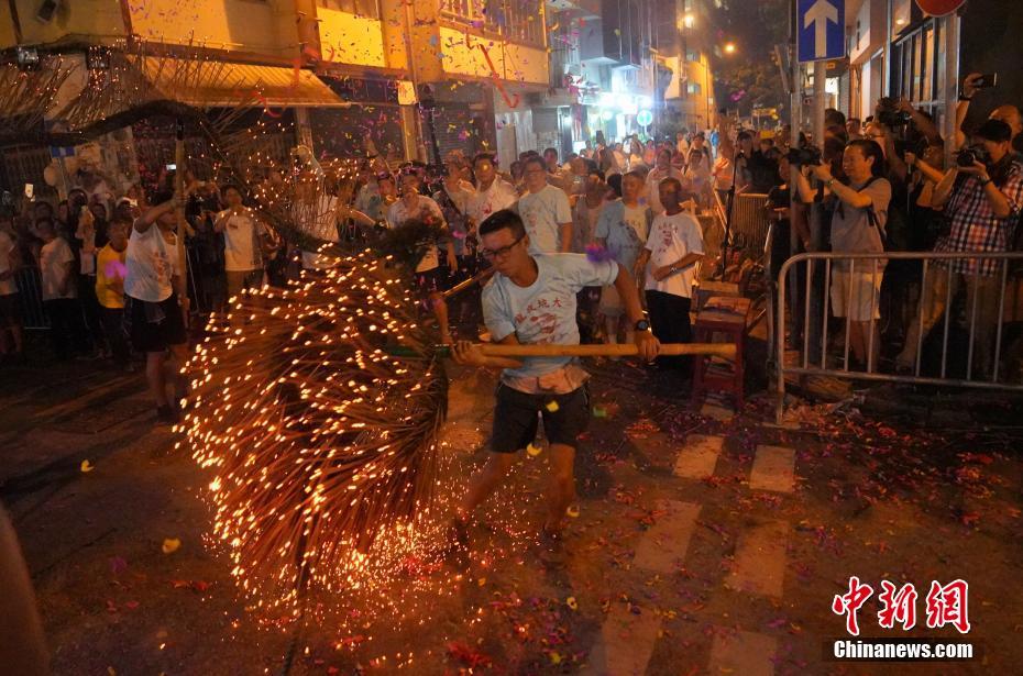 9月12日晚,中秋佳节前夕,香港独特的中秋传统民俗活动“大坑舞火龙”在大坑上演。在锣鼓声中,大坑村民舞动着火龙在街道上穿梭,平常宁静的小巷热闹非凡,火光闪烁,吸引众多市民和游客观看。“大坑舞火龙”已被列为国家级非物质文化遗产。中新社记者 张炜 摄