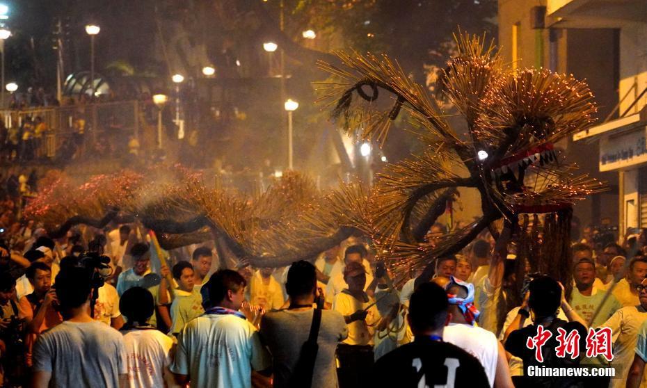 9月12日晚,中秋佳节前夕,香港独特的中秋传统民俗活动“大坑舞火龙”在大坑上演。在锣鼓声中,大坑村民舞动着火龙在街道上穿梭,平常宁静的小巷热闹非凡,火光闪烁,吸引众多市民和游客观看。“大坑舞火龙”已被列为国家级非物质文化遗产。中新社记者 张炜 摄