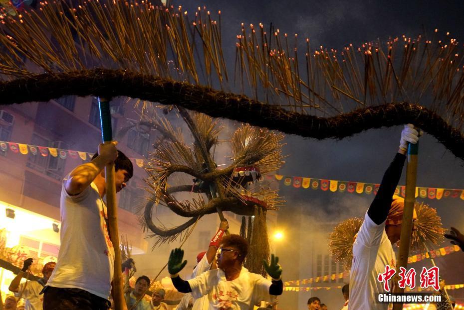 9月12日晚,中秋佳节前夕,香港独特的中秋传统民俗活动“大坑舞火龙”在大坑上演。在锣鼓声中,大坑村民舞动着火龙在街道上穿梭,平常宁静的小巷热闹非凡,火光闪烁,吸引众多市民和游客观看。“大坑舞火龙”已被列为国家级非物质文化遗产。中新社记者 张炜 摄