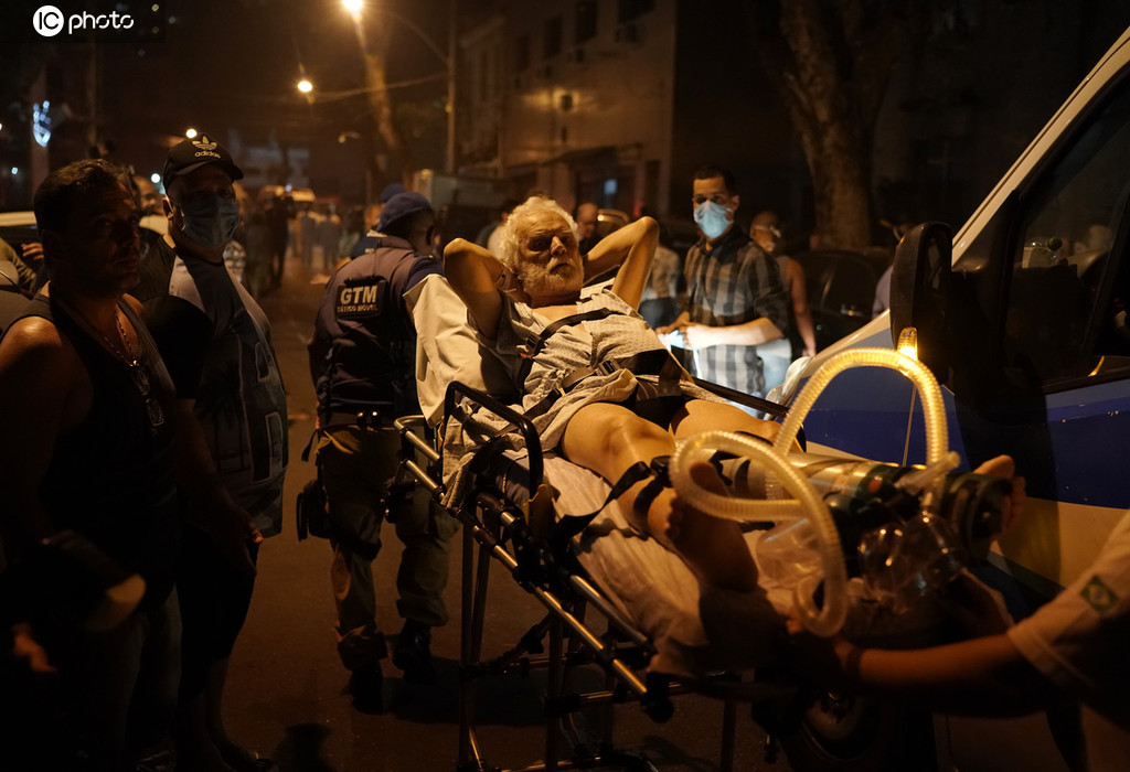 当地时间2019年9月12日,巴西里约热内卢,当地一家医院发生火灾,病人在医护人员及亲属的帮助下紧急疏散至户外,消防人员已赶往现场救援。图源:ICphoto