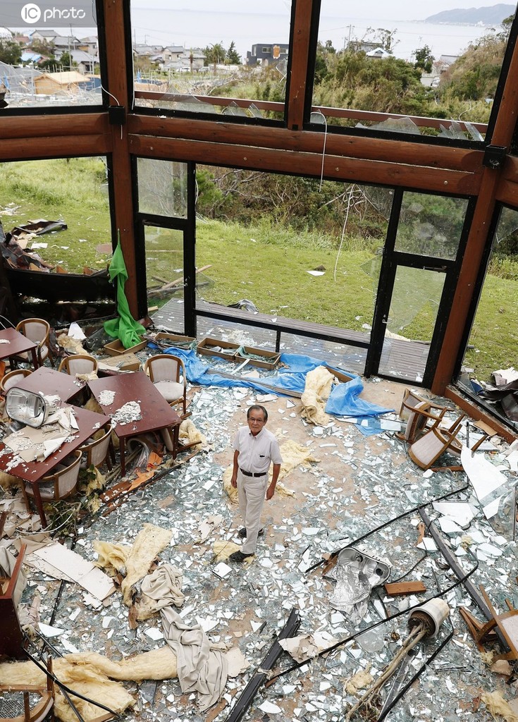 当地时间2019年9月13日,东京千叶县,台风“法茜”过境之后,当地被台风破坏的房子。图源:ICphoto