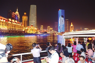 “坐游船看夜景,感觉我们天津发展特别快,夜景特别美,尤其是还亲眼见证了解放桥开启,这个中秋节,过得太有意义了。”在“网安号”游船上,专程从滨海新区赶来的周福英阿姨一直在拍照:“知道我要来坐游船,亲戚朋友提前就嘱咐多拍些照片,你看,我发了很多朋友圈,就是想跟大家一起共享快乐。”