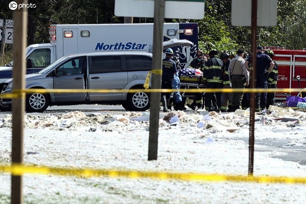 当地时间2019年9月16日,美国缅因州法明顿市,一栋建筑发生爆炸,造成一名消防员丧生,另有多人受伤。据美国媒体报道,事发建筑是一栋低层办公楼,地下室有存储丙烷的气罐。当天楼内出现气味后,人员已全部疏散。消防人员接到报警后赶到现场进行检查时发生爆炸。现场画面显示,该建筑已完全损毁。(图:东方IC)