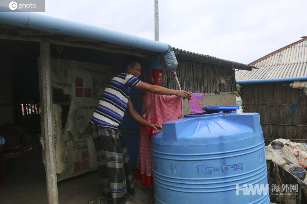 2019年9月17日报道(拍摄时间不详),孟加拉国萨德基拉,孟加拉国是最容易受到气候变化影响的国家之一,由于气候变化,孟加拉国长期遭受了热带气旋、洪水、山体滑坡和干旱等严重的自然灾害,且这些灾害的强度和频率都将随着气候的变化而增加,这使得孟加拉国的饮水危机也不断加深,雨水甚至成为了一些村庄的主要饮水来源。