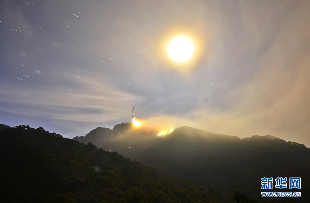 松山千重翠,月点一颗珠。 新华网发(姚育青 摄)