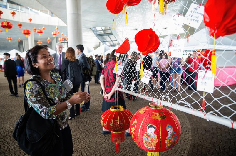 2017年9月29日,在巴西里约热内卢,一名女子在“中国日”活动上用手机拍照留念。 新华社记者李明摄