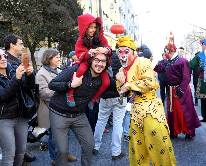 随着中国日益走近世界舞台中央,中国文化在全球的“能见度”不断提升。中国文化以深厚的底蕴、特有的魅力为世界各地的民众打开了一扇了解中国、体验中国的窗口,为中国与世界搭建起一座交流的桥梁。2019年2月9日,在葡萄牙首都里斯本,来自中国国家京剧院的演员在“欢乐春节”活动中与观众互动。新华社记者张立云摄