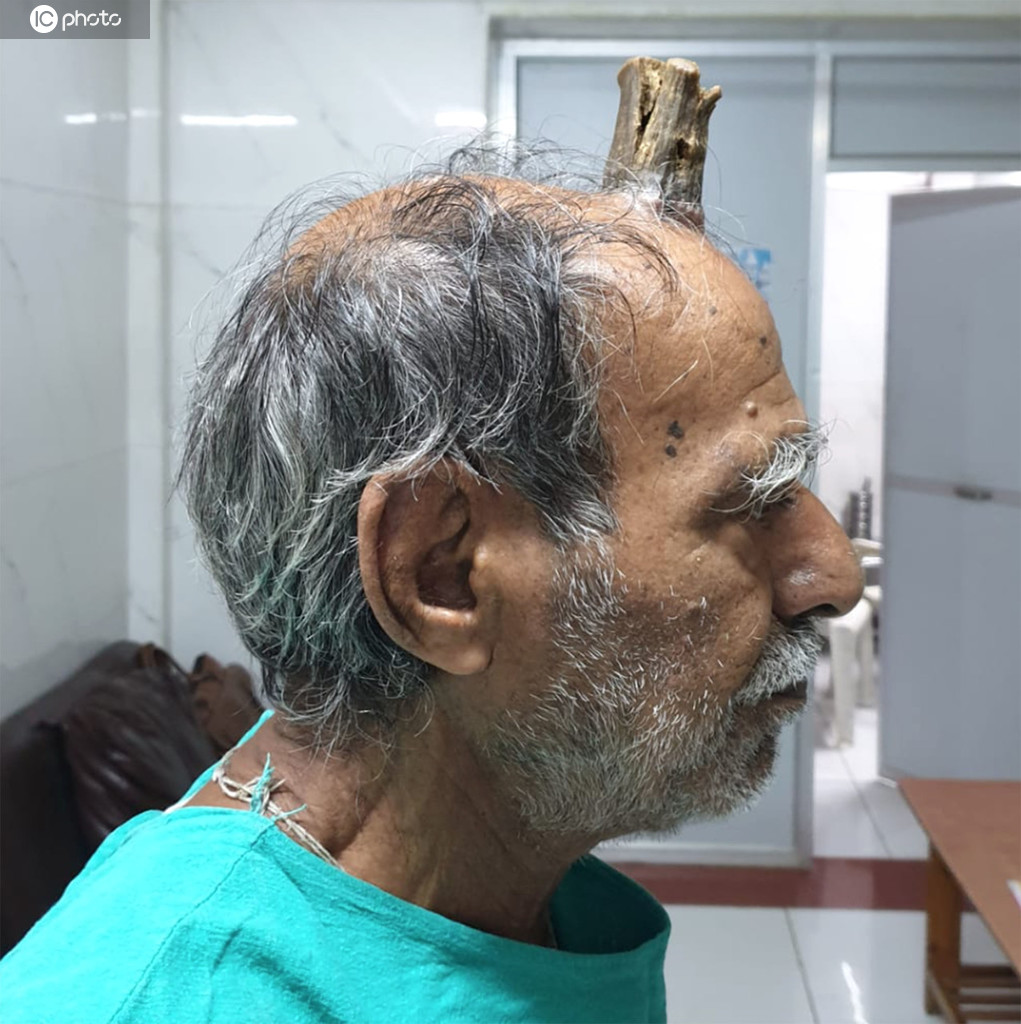 真实版"小龙人" 印度男子头上长出10厘米"犄角"