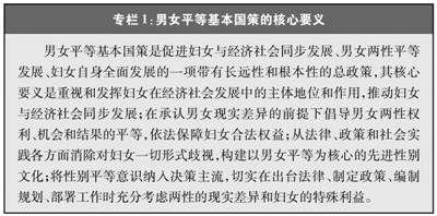 促进妇女全面发展和男女平等是中国特色社会主义的重要组成部分。中国始终高度重视促进男女平等和妇女事业发展,加强和改进党对妇女工作的领导,建立完善人大立法保障妇女权益、政协协商推动妇女事业发展的工作机制,建立健全政府贯彻落实男女平等基本国策的工作机制,强化妇联组织作为党和政府联系妇女群众桥梁纽带的工作机制,为妇女事业发展提供了强有力的政治保障和制度机制保障。