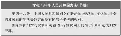 保障妇女权益的法律体系不断完善。《中华人民共和国宪法》作为国家根本大法,始终坚持男女平等原则。1954年第一部宪法规定了妇女在政治、经济、文化、社会和家庭生活各方面享有同男子平等的权利,并在历次修改中一以贯之。2004年,“国家尊重和保障人权”写入宪法修正案,奠定了妇女人权保障基石。1950年,新中国第一部法律——《中华人民共和国婚姻法》确立了婚姻自由、一夫一妻、男女权利平等的婚姻制度。改革开放40多年来,伴随中国特色社会主义民主法治进程,中国制定和修订《中华人民共和国全国人民代表大会和地方各级人民代表大会选举法》《中华人民共和国刑法》《中华人民共和国婚姻法》《中华人民共和国母婴保健法》《中华人民共和国劳动法》《中华人民共和国就业促进法》《中华人民共和国劳动合同法》《中华人民共和国农村土地承包法》《中华人民共和国村民委员会组织法》等法律法规,都鲜明体现了男女平等原则。1992年制定实施的《中华人民共和国妇女权益保障法》,是中国第一部促进男女平等、保障妇女权益的基本法,具体规定了妇女的政治权利、文化教育权益、劳动权益、财产权益、人身权利和婚姻家庭权益。2005年修订妇女权益保障法,确立了男女平等基本国策的法律地位,并将“劳动权益”修订为“劳动和社会保障权益”。党的十八大以来,保障妇女权益立法取得新突破。2015年出台《中华人民共和国反家庭暴力法》,设立家庭暴力告诫、强制报告、人身安全保护令和紧急庇护四项制度;同年,刑法修正案(九)废除嫖宿幼女罪,加大保护幼女人身权利。70年来,中国逐步形成并完善了以宪法为基础,以妇女权益保障法为主体,包括100多部单行法律法规在内的保障妇女权益的法律体系。