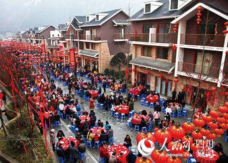 映秀东莞大道上摆的坝坝宴。 汶川县委宣传部供图