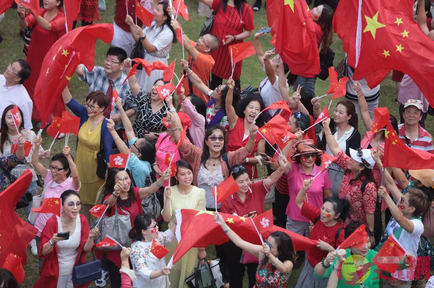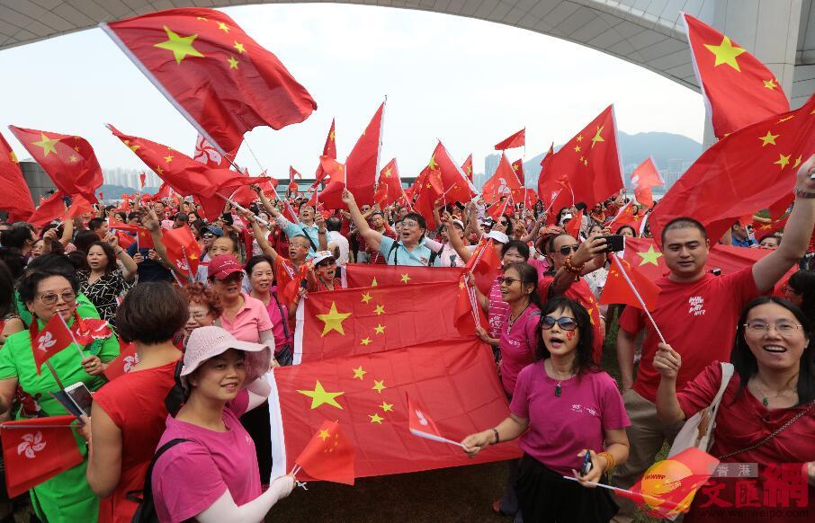 9月25日下午,香港中华文化总会在九龙湾启德游轮码头举办"快闪唱国歌"活动,三百多名市民来到这里挥动五星红旗,高唱国歌和《歌唱祖国》,庆祝新中国七十华诞,祝福祖国。活动现场香港市民表示,祖国的强大和香港息息相关,"只有祖国强大了,普通市民才不会被人欺负",也有不少市民表示非常期待即将举行的国庆大阅兵。