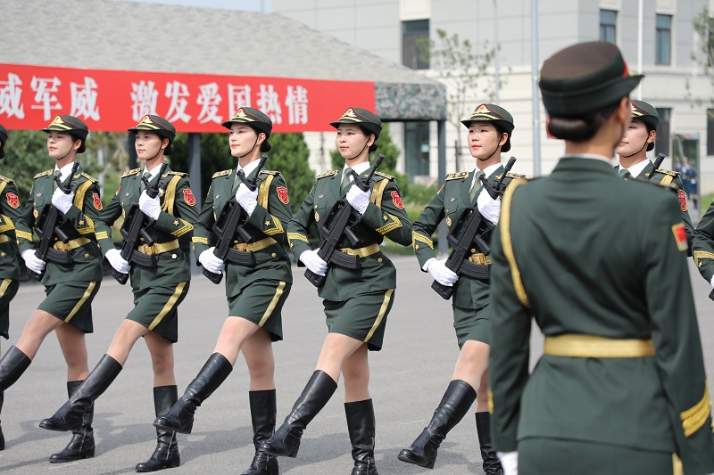 海外网直击阅兵集训点!艳阳高照 女兵踢正步绽放微笑