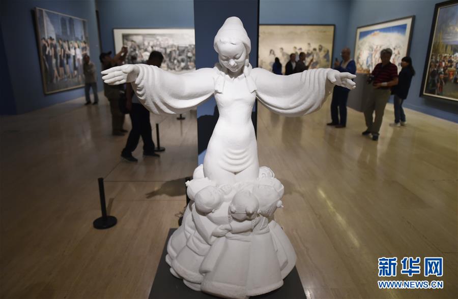 9月26日,观众在中国美术馆参观展出作品。 当日,“伟大历程 壮丽画卷——庆祝中华人民共和国成立70周年美术作品展”在北京中国美术馆开幕。展览以中国美术馆的馆藏作品为主,同时汇集国内20余个重要美术馆的经典藏品,共展出国画、油画、雕塑等480余件作品。 新华社记者 鲁鹏 摄