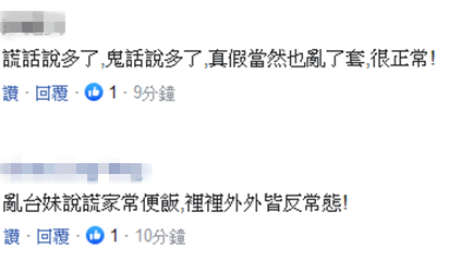 此外,还有网友酸讽蔡英文,“谎话说多了,鬼话说多了,真假当然也乱了套,很正常!”“乱台妹说谎家常便饭,里里外外皆反常态!”