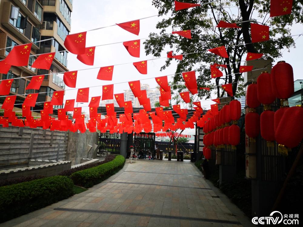 成都市一处居民小区里,群众自发挂起国旗庆祝新中国成立70周年。(记者 何川 摄)