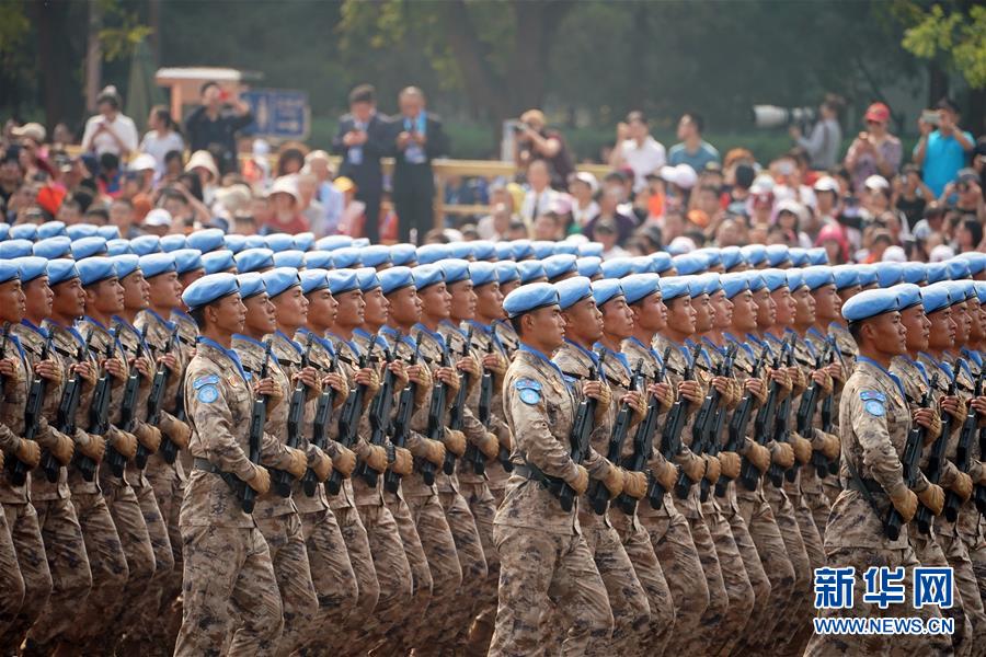 10月1日上午,庆祝中华人民共和国成立70周年大会在北京天安门广场隆重举行。这是维和部队方队。 新华社记者 杨世尧 摄