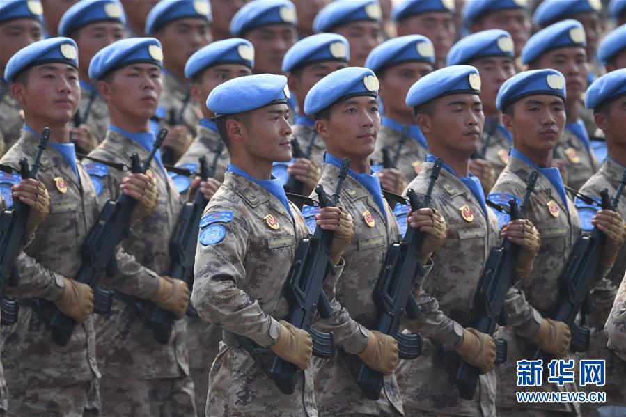 10月1日上午,庆祝中华人民共和国成立70周年大会在北京天安门广场隆重举行。这是受阅的维和部队方队。 新华社记者 陶明 摄