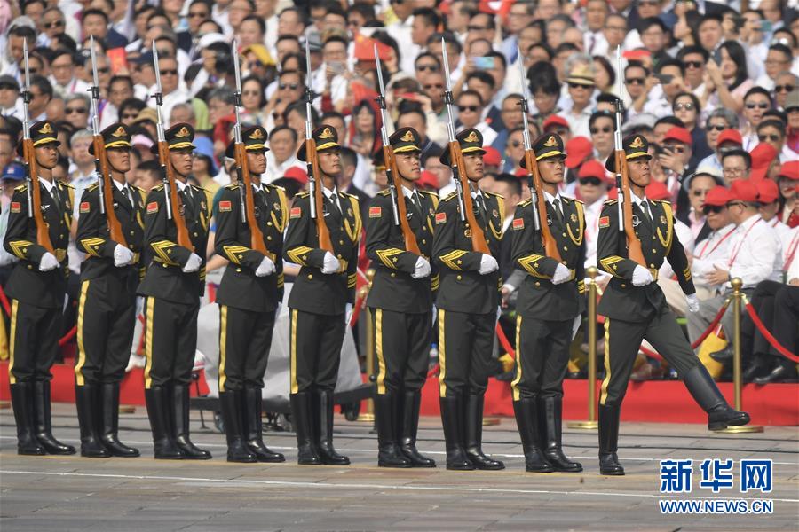 10月1日上午,庆祝中华人民共和国成立70周年大会在北京天安门广场隆重举行。这是受阅的女兵方队。 新华社记者 武巍 摄