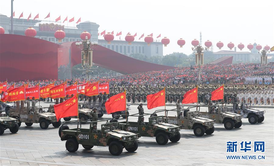 10月1日上午,庆祝中华人民共和国成立70周年大会在北京天安门广场隆重举行。这是战旗方队接受检阅。 新华社记者 殷刚 摄