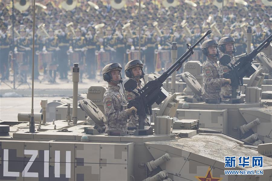 10月1日上午,庆祝中华人民共和国成立70周年大会在北京天安门广场隆重举行。这是坦克方队接受检阅。 新华社记者 邢广利 摄