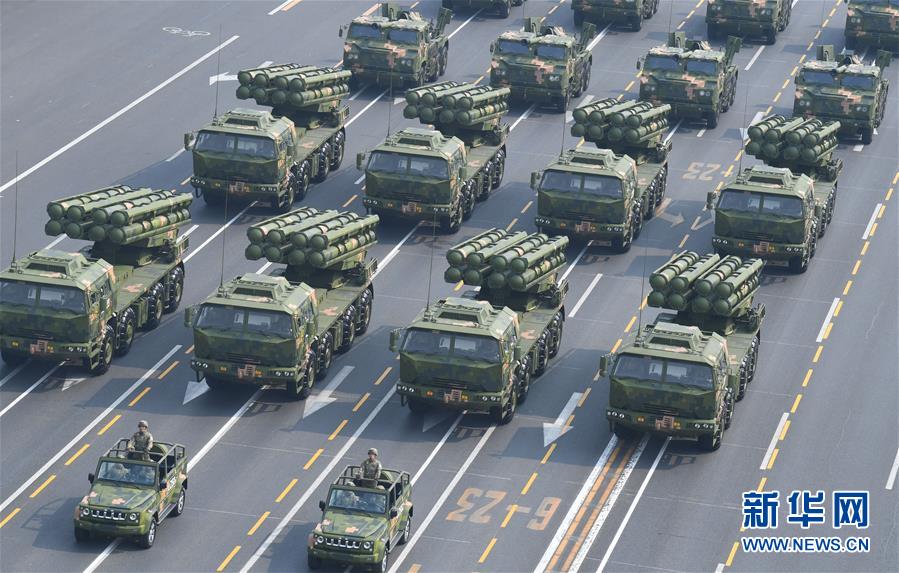 10月1日上午,庆祝中华人民共和国成立70周年大会在北京天安门广场隆重举行。 这是行进中的自行火炮方队。 新华社记者 普布扎西 摄