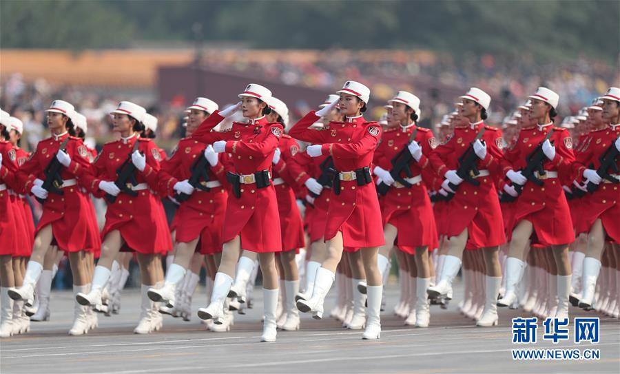 10月1日上午,庆祝中华人民共和国成立70周年大会在北京天安门广场隆重举行。 这是行进中的民兵方队。 新华社记者 欧东衢 摄