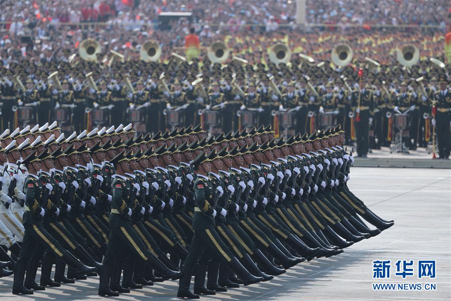 10月1日上午,庆祝中华人民共和国成立70周年大会在北京天安门广场隆重举行。这是行进中的仪仗方队。 新华社记者 刘卫兵 摄