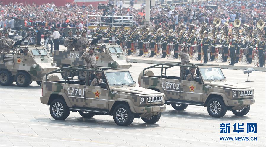 10月1日上午,庆祝中华人民共和国成立70周年大会在北京天安门广场隆重举行。这是特战装备方队接受检阅。 新华社记者 殷刚 摄​