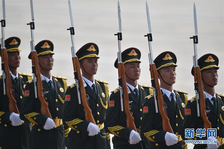 10月1日上午,庆祝中华人民共和国成立70周年大会在北京天安门广场隆重举行。这是标兵就位。 新华社记者刘潇摄