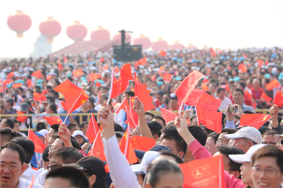 海外网现场直击:天安门广场全场高唱国歌 五星红旗冉冉升起