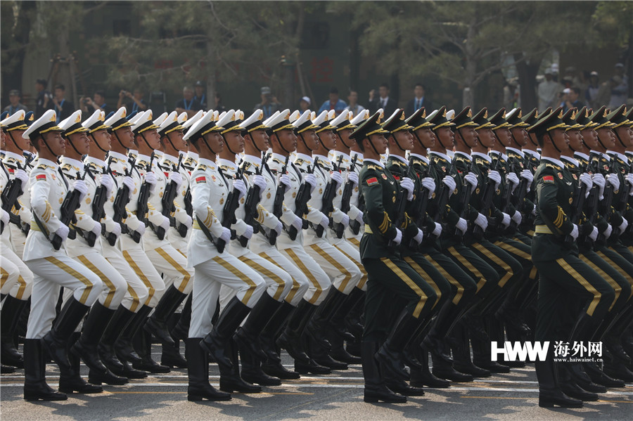 海外网现场直击:三军仪仗队旗英姿飒爽,铿锵前进!