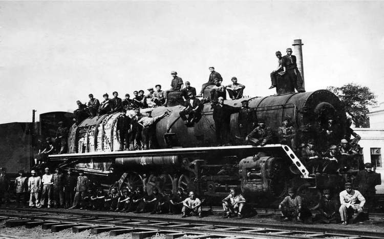 1948年5月1日,“朱德号”与“毛泽东”号机车组全体乘务员在庆祝“五一”劳动节后合影留念 。