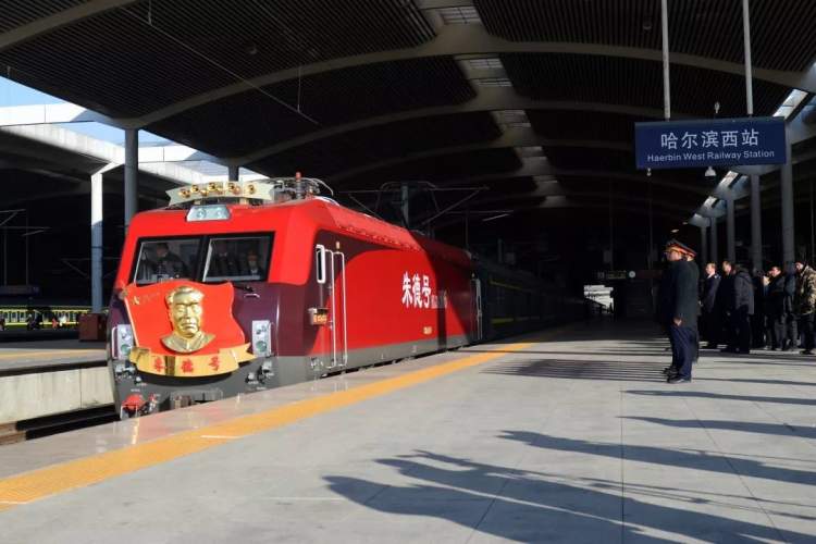 无论时代如何变迁,“毛泽东号”司机长和乘务员始终坚持人民铁路为人民的宗旨,牢牢秉承开领袖车、做领军人的责任担当,用高度的责任心、严明的责任制、过硬的基本功,实现了73年安全行车一事不出的优异成绩,成为全路运输安全生产的火车头。朱德号在1946年哈尔滨机务段掀起的那场“机车复活”运动中,与“毛泽东号”一起诞生的还有另一辆伟人号机车——“朱德号”。这两台同时以领袖名字命名的机车,自诞生之日起就成为一对亲密战友,转战南北,并肩战斗。