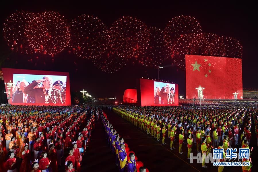 10月1日晚,庆祝中华人民共和国成立70周年联欢活动在北京天安门广场举行。这是联欢活动现场。 新华社记者 胡虎虎 摄
