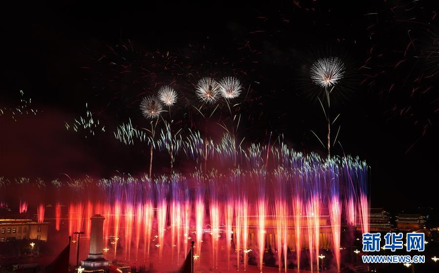 10月1日晚,庆祝中华人民共和国成立70周年联欢活动在北京天安门广场举行。这是联欢活动现场。 新华社记者 刘潺 摄