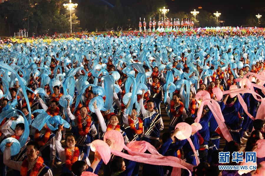 10月1日晚,庆祝中华人民共和国成立70周年联欢活动在北京天安门广场举行。 新华社记者 李京 摄