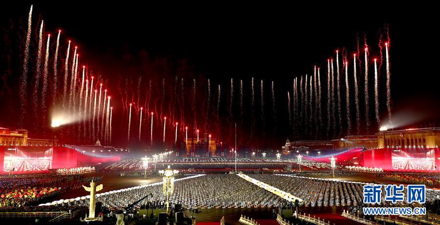 10月1日晚,庆祝中华人民共和国成立70周年联欢活动在北京天安门广场举行。这是联欢活动现场。 新华社记者 兰红光 摄