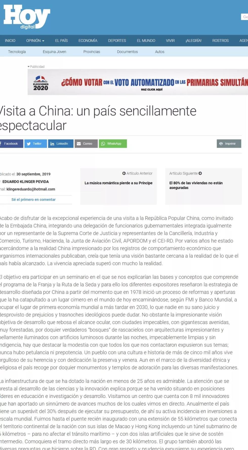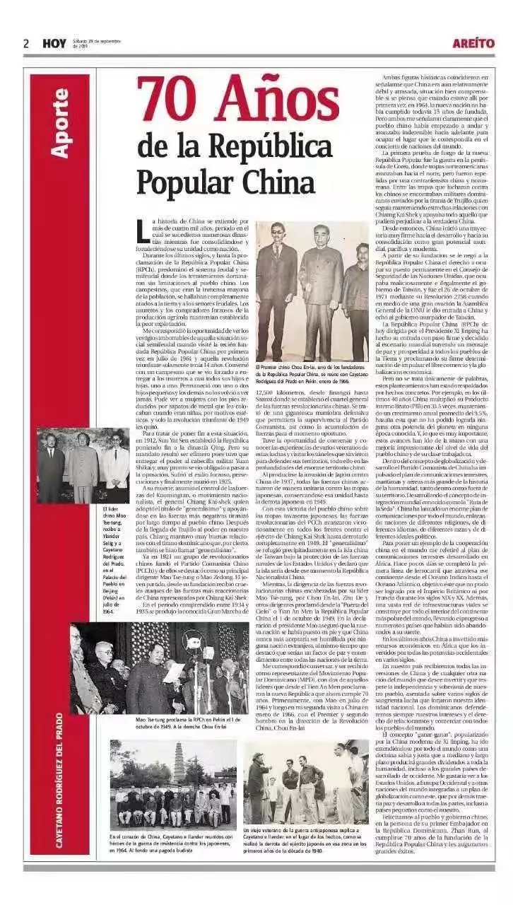 近日,多米尼加各界纷纷为中华人民共和国成立70周年点赞,多米尼加政治家卡耶塔诺、科学院院士克林格、外交部亚大司长冈萨雷斯等多位人士主动在当地媒体发声,盛赞中国取得的伟大成就。