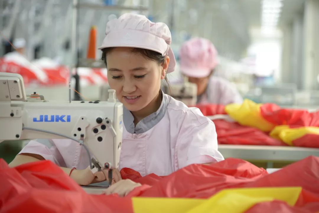 他们借鉴降落伞设计技术,在旗面尾部两侧增加了两块梯形“风兜”设计。风兜的存在可以大大提高旗面尾部的受力拒变能力,减轻风力对旗面尾部的压迫,既减小旗面变形,又保护旗面。