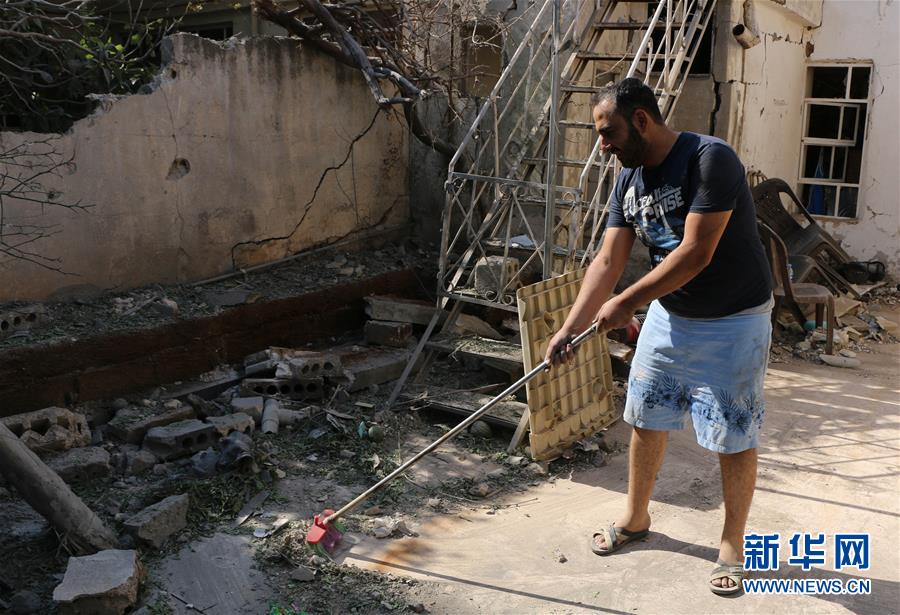 10月12日,叙利亚哈塞克省卡米什利,一名男子在清扫炮击后留下的碎石瓦砾。 新华社发