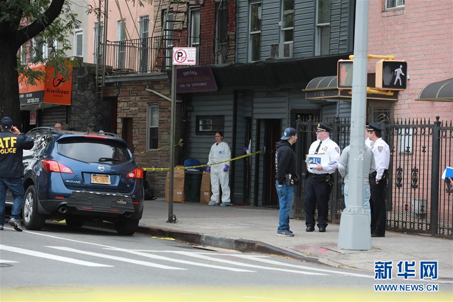 10月12日,在美国纽约布鲁克林区,警方在枪击案现场调查。 新华社记者 张墨成 摄