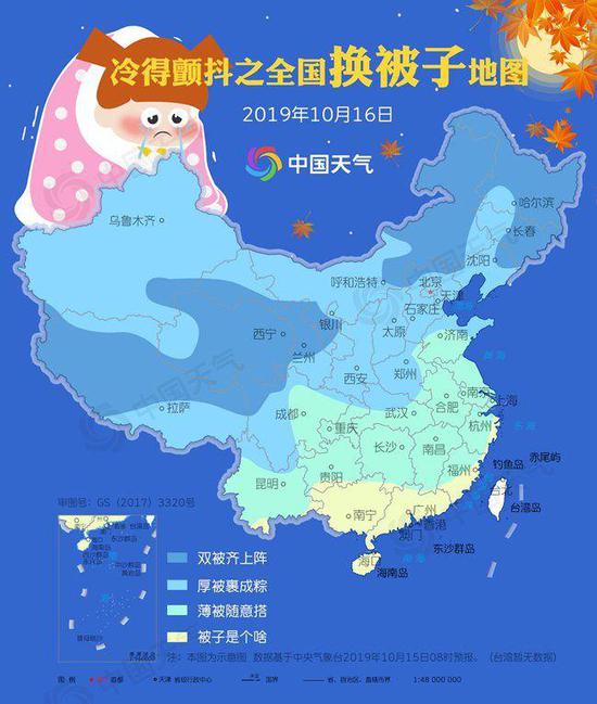16日气温有所回暖,但是在东北东部和北部,内蒙古中东部、青藏高原等地依然需要双被齐上阵;华北以及西北地区东部到了晚上还需继续裹紧小被子。江南,西南地区东部的朋友薄被也不能少;华南、海南的小伙伴盖不盖随意啦。
