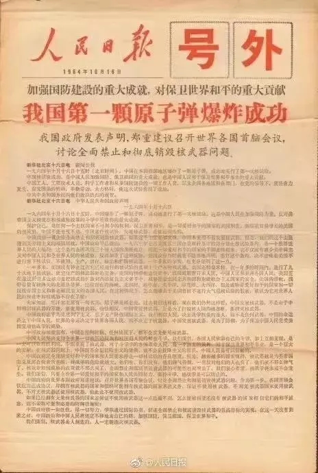 55年前的今天,中国第一颗原子弹爆炸成功!