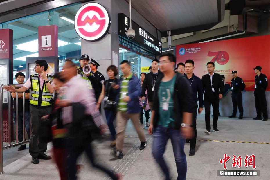 民警疏导大客流从地铁站内进入展馆。殷立勤 摄