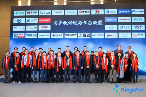 现场,金蝶、华为、阿里、太极、金山、360等国产芯片、操作系统、数据库、整机、系统集成商、互联网、信息安全、办公软件各领域30余家企业代表上台,共同宣告成立“国产软件服务生态联盟”,发挥产业力量,为政企客户提供安全、智能的数字化解决方案,共创中国软件新时代!