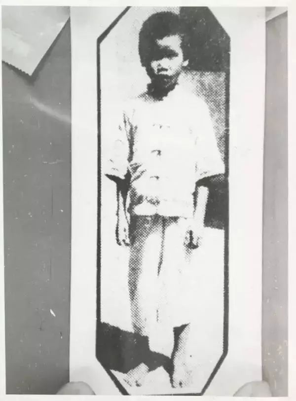 △1933年7月国民党政府在《南山剿匪记》和《广州日报》上刊登大幅小彭士禄入狱照片,注有“共匪彭湃之子被我九师捕获”等字样