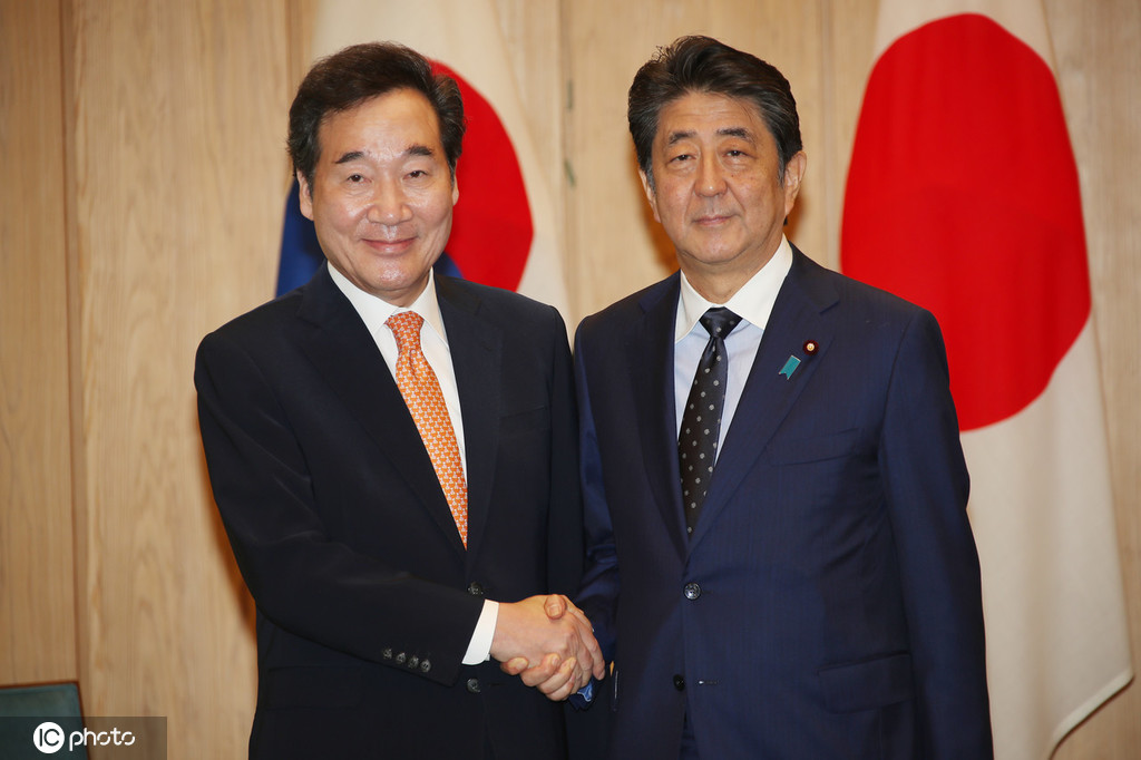 当地时间2019年10月24日,日本东京,韩国国务总理李洛渊与日本首相安倍晋三会晤。这是时隔一年来韩日首次进行高层对话。据报道,李洛渊将向安倍晋三转交韩国总统文在寅的亲笔信,并说明韩国政府希望改善两国关系的意愿。图源:东方IC