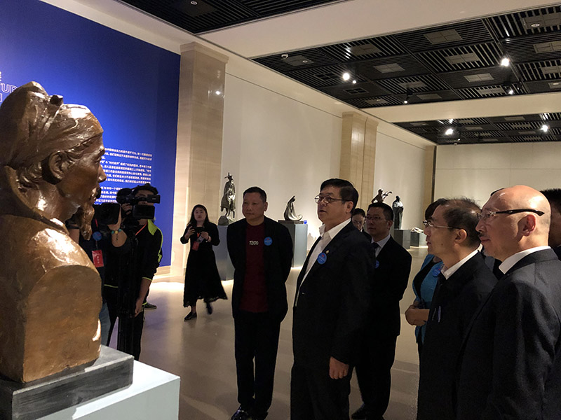 海澜集团董事长周建平说:“在各方朋友的支持和关心下,今天我们三个展览同时开幕。其中,雕塑展是中国雕塑界老、中、青三代著名雕塑家的代表的一次集中展示,可以说这次展览展示的就是中国当代雕塑史。这些作品我们全部收藏。我们中国的雕塑家们用西方雕塑技法与中国文化达到了高度统一,这些作品中融入了中华文华,有我们中国的魂和神。我想大家参观展览以后一定会感受到它的魅力。漆画在中国也是传统文化的代表,它保存的年限是其它种类的艺术品难以比拟的。中国画的根和本都在中国文化中,我们海澜美术馆坚持收藏、展示中国画。我想文化自信在我们美术馆的展览中会有很好的体现。”